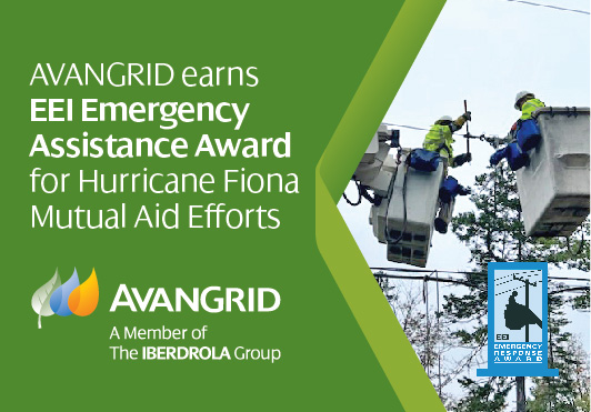 ORANGE, Conn. — January 11, 2023 — AVANGRID, Inc. (NYSE: AGR), a leading sustainable energy company and member of the Iberdrola Group, today announced that it received an award from the Edison Electric Institute (EEI) for its efforts in using its multi-state utility resources to respond to the impacts of Hurricane Fiona in Nova Scotia, Canada in September 2022. United Illuminating (UI) and Central Maine Power (CMP) received the EEI Emergency Assistance Award for its mutual aid efforts to support power restoration in Nova Scotia following hurricane damage that caused billions in damage to Canada’s shoreline and leaving hundreds of thousands without power. This award marks the 13th time EEI has recognized AVANGRID for its storm response efforts.