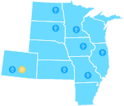 Avangrid built and operates a large portfolio of onshore wind and solar projects throughout the central United States. Across Colorado, Illinois, Iowa, Kansas, Minnesota, Missouri, North Dakota, and South Dakota, Avangrid operates 26 clean energy projects (25 wind, 1 solar) with a combined capacity of 2.7 GW. The region, famous for its winds, includes some of Avangrid’s oldest and newest wind energy projects. States like Illinois, Iowa, and Minnesota represent some of largest states in Avangrid’s onshore wind portfolio by capacity.